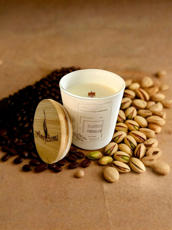 Zanurz się w kremowym, otulającym aromacie świecy sojowej, która łączy nuty świeżo mielonej kawy z aksamitną słodyczą pistacji.