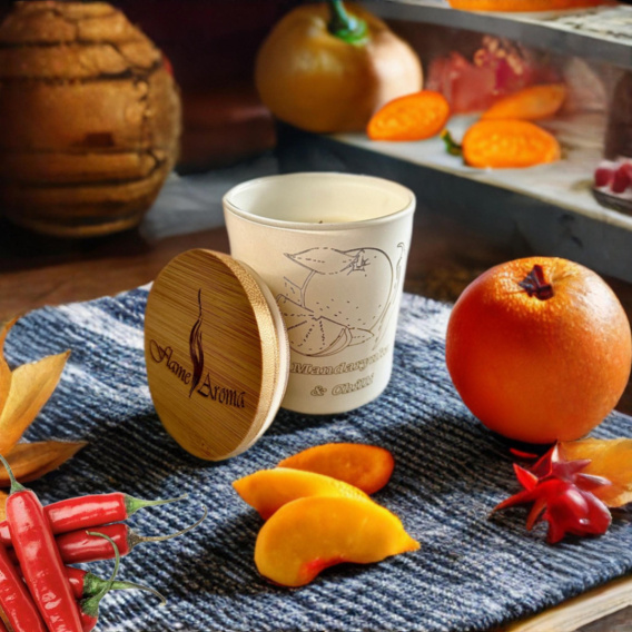 Nasza naturalna świeca sojowa o zapachu mandarynki i chilli to aromatyczna podróż, w której słodycz soczystych owoców spotyka się z pikantną nutą rozgrzewającej przyprawy.